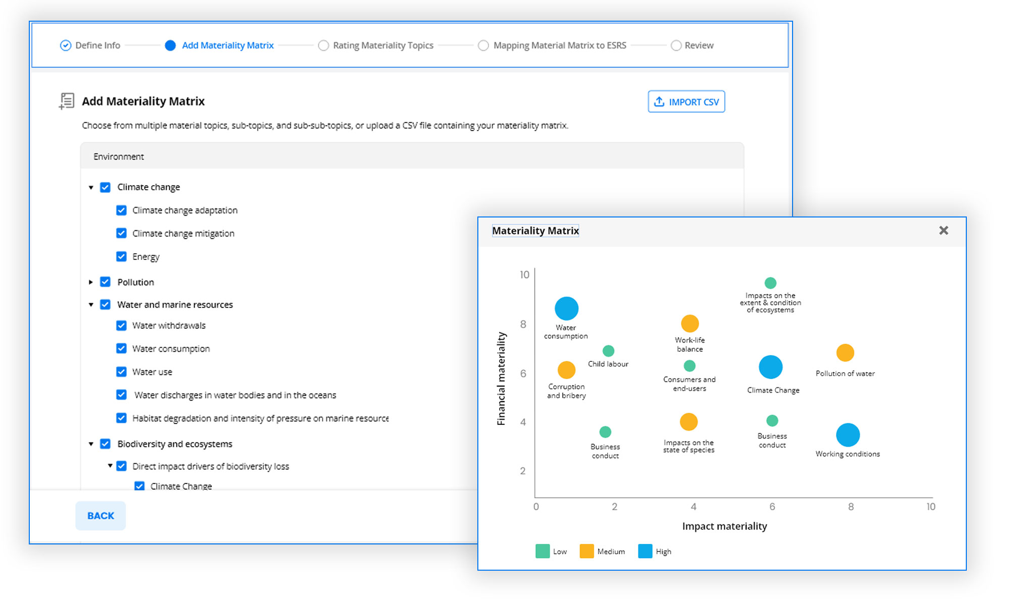 Optimize your CSRD compliance process with a flexible double materiality assessment process aligned with EFRAG guidance. Use the gap analysis dashboard to pinpoint gaps in your sustainability disclosures and effectively meet ESRS reporting requirements.